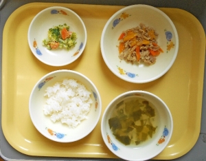 豚肉のごま味噌炒め・ブロッコリーサラダ・中華スープ・ごはん