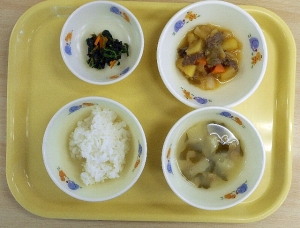 肉じゃが・ほうれん草のおかか和え・おみそ汁・ごはん